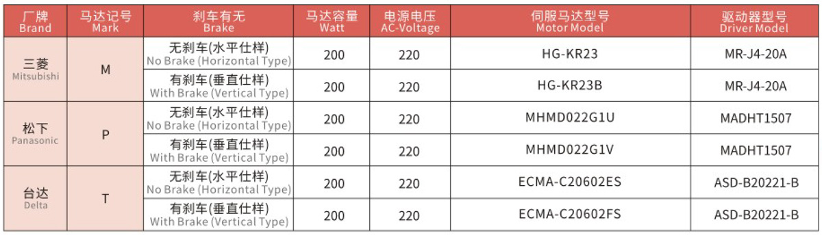 搭配伺服马达一览表